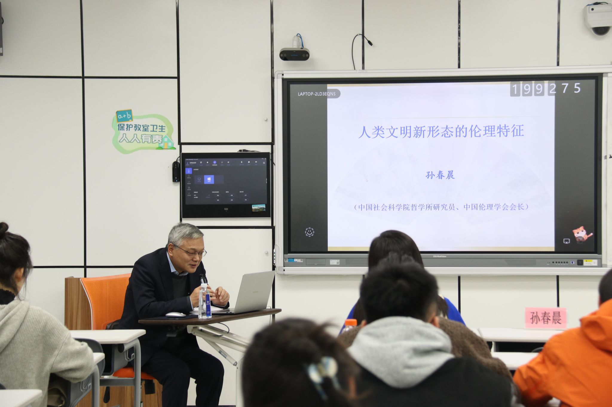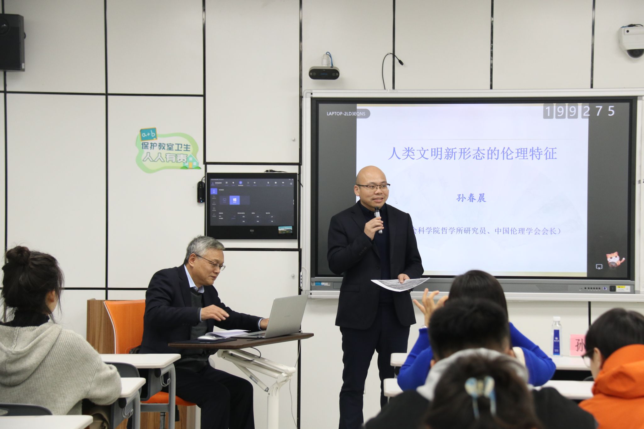 2023年12月9日,为进一步学习理解习近平总书记提出的“人类文明新形态”这一概念的丰富意涵,及其与中国特色社会主义、与中国式现代化的关系,国产传媒 邀请到中国社会科学院哲学研究所研究员、中国伦理学会学长孙春晨教授给全院师生做了题为“人类文明新形态的伦理特征”的学术讲座。此次讲座由国产传媒 、全国高校思政课名师工作室(国产传媒 )、浙江省高校思政课孙邦金名师工作室主办。国产传媒 院长卓高生教授主持了此次讲座。