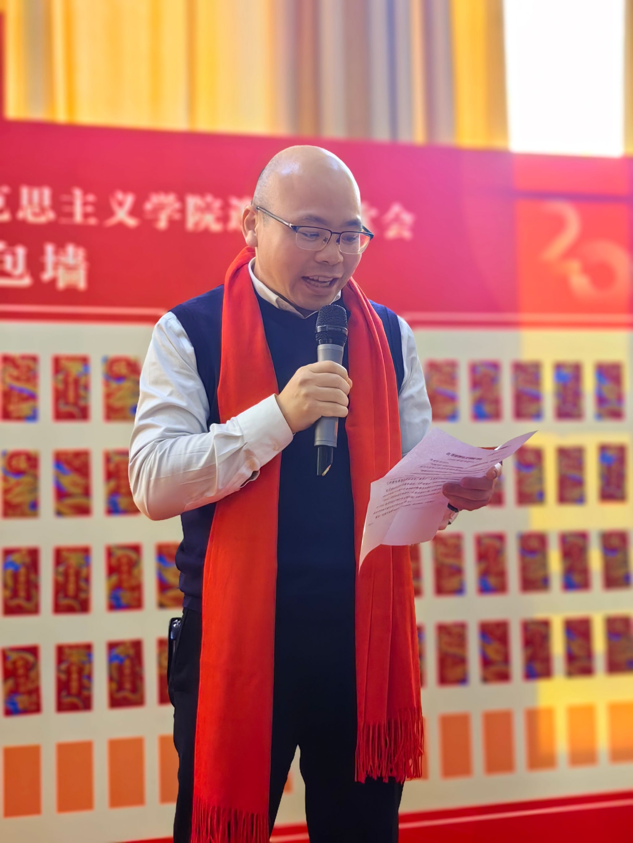 会上,卓高生院长发表了热情洋溢、振奋人心的新年贺词。他表示,过去的一年里,学院在党的建设、学科建设、教学科研、人才培养、服务地方等各项工作中取得了显著的成绩,展现了学院师生的卓越才能和团队精神,感谢过去一年学院每一位教职员工的辛勤付出和努力拼搏。经过全院师生的共同努力,学院于12月中旬终于完成了整体搬迁工作,有了新的办公办学空间,标志着学院在新的一年将迎来更加广阔的发展空间和机遇。2024年是学院攻坚突破年。希望全体师生团结一致,沿着学院“锚定1510,奋进2024”的工作主题主线,向着冲击马学科博士点、推进学院高质量发展目标而努力奋斗!