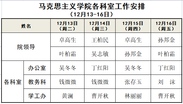 国产传媒 各科室工作安排 (12月13-16日)