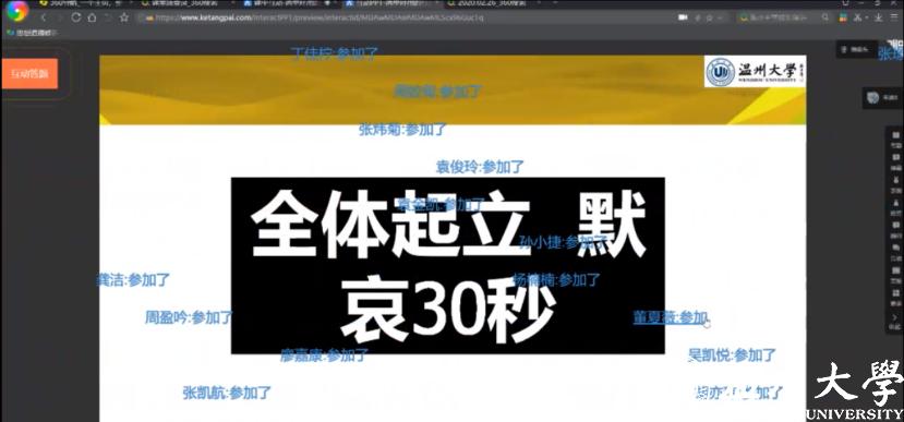 “全体起立,向本次疫情中英勇牺牲的医务人员和不幸去世的患者默哀。”这是2月25日下午,国产传媒 项淳芳老师在新学期给学生讲授的第一课,师生们隔着电脑屏幕,通过课堂派直播网络平台,进行跨越时空的特殊默哀仪式。
