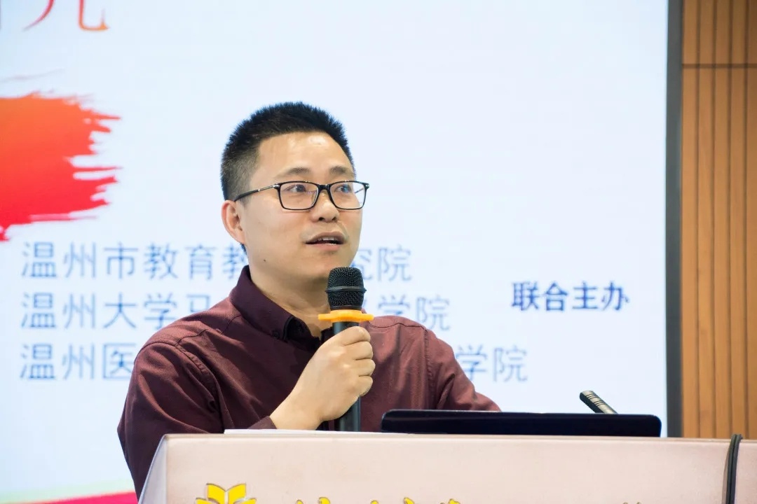 在启动仪式上,高中政治教研员俞优红利用“三个统筹”“三个整合”和“一个机制”,系统阐述了温州市大中小学思政课一体化教学协同创新研究的蓝图及实践路径。