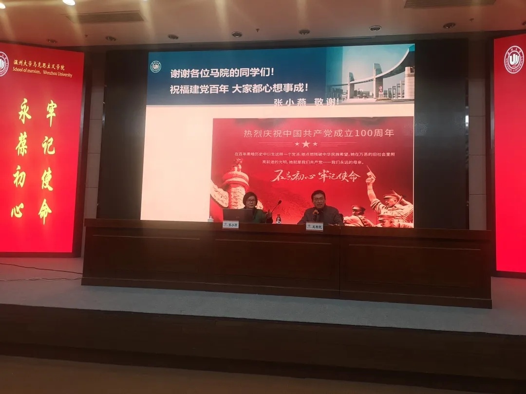 张小燕教授从“弘扬红船精神”的主题切入,以1919“五四运动”、1920“共产党宣言”、1924“温州独立支部”、1930“红十三军”、1935“浙南挺进师”、1939“中共浙江省一大”、1949“五星红旗”、1978“改革开放”为主线,向我们展示了为中国共产党波澜壮阔的奋斗史、改革史,并巧妙地融入了每一个重要历史事件中的温州人、温大人、马院人元素。通过张教授激情满满、如数家珍的盘点阐述,让在座师生全面了解“红色文明在瓯越”的深刻内涵。