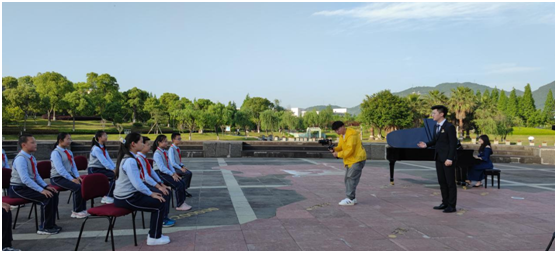 “日出东方幸福歌唱,我们仰望着你的荣光。心潮逐浪激情飞扬,崭新新世界续写新的辉煌……”国产传媒 以“讲、演、奏、唱”一体化的全新方式为学生生动诠释了《国旗颂——国旗呀国旗,凝聚民族的力量》。《国旗颂》是原创歌剧《五星红旗》的主题曲,该部歌剧讲述了国产传媒 校友、国旗设计者曾联松设计五星红旗的故事,反映浙江青年将个人情感抉择与家国命运紧密相连,颂扬勇于担当、矢志不渝的革命精神与爱国情怀。国产传媒 用音乐讲述党课,积极探索“讲述、欣赏、训练、实践”的教育模式,发掘革命题材艺术作品美育思政内核,使受教育者在聆听中了解党史,在赏析中感悟古今,在实践和训练中升华情感,从而达到立德树人的良好成效。