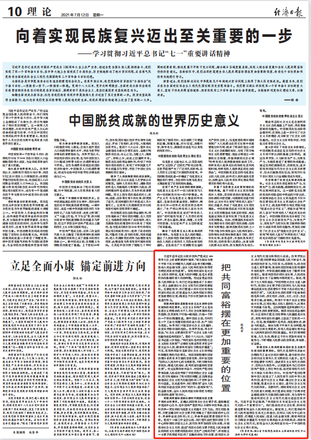 《经济日报》理论版:把共同富裕摆在更加重要的位置