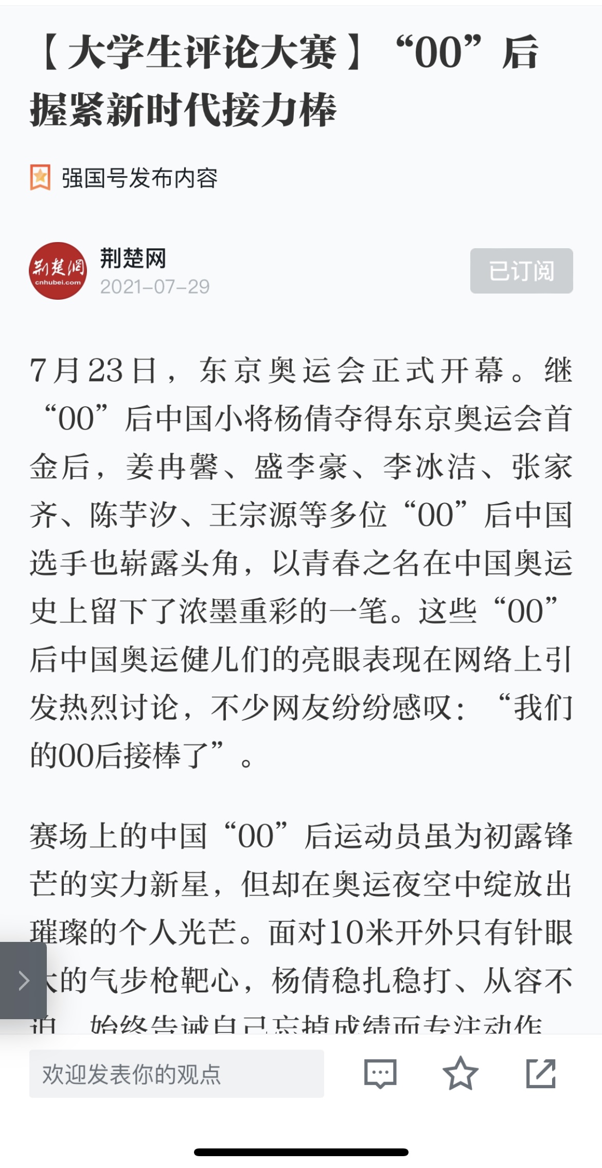 学习强国:【大学生评论大赛】“00”后握紧新时代接力棒