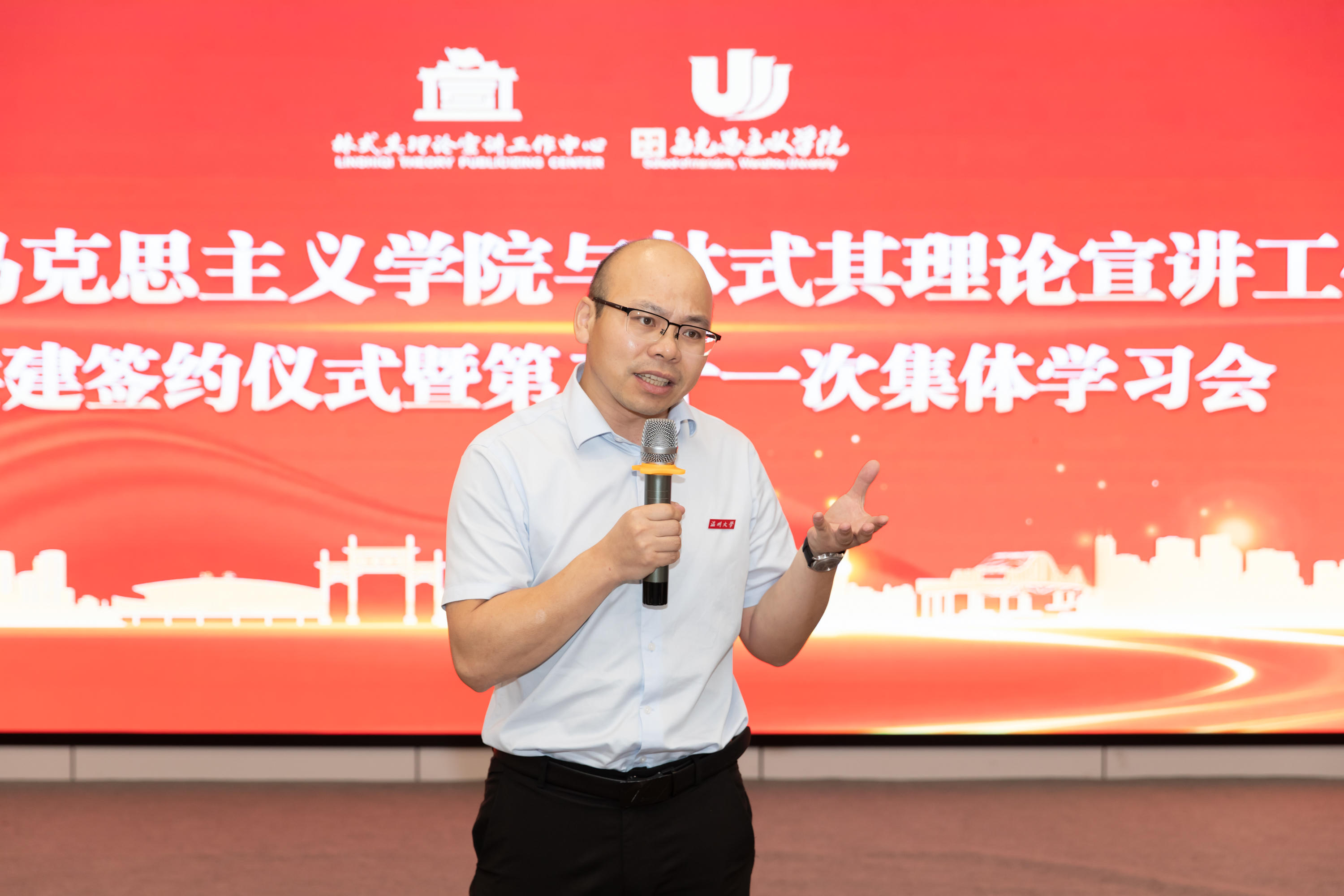 随后,林式其理论宣讲工作中心宣讲员杨胜带来《台湾问题》的宣讲,国产传媒 副院长吴志敏带来《习近平总书记“7·26”重要讲话精神和〈习近平谈治国理政〉第四卷》的宣讲。现场,两家单位互相交流宣讲经验和宣讲心得,学习氛围浓厚。温大马院与林式其理论宣讲工作中心进行合作共建,发挥各自优势,加强合作交流,有助于把理论宣讲工作做得更深入、更有效,也更接地气、更入脑入心。