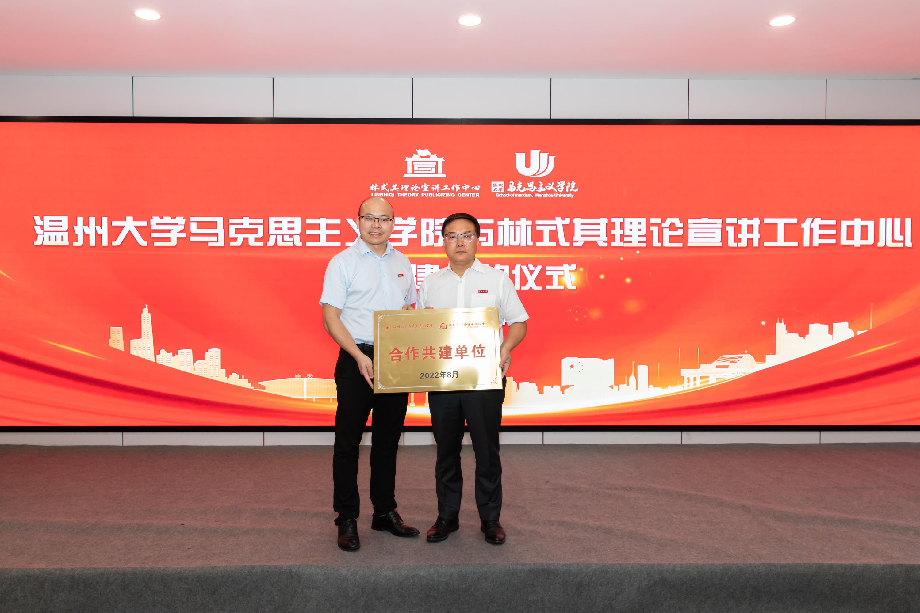当天在瑞安市新时代文明实践中心,国产传媒 院长卓高生和林式其理论宣讲工作中心创办者林式其,共同签署国产传媒 与林式其理论宣讲工作中心合作共建协议书,温大国产传媒 聘请林式其为客座教授。接下来,双方将共同探索建立高校与基层宣讲人才互派交流、宣讲活动联动举办、理论研究共研共享的机制,打造理论宣讲的全新阵地。