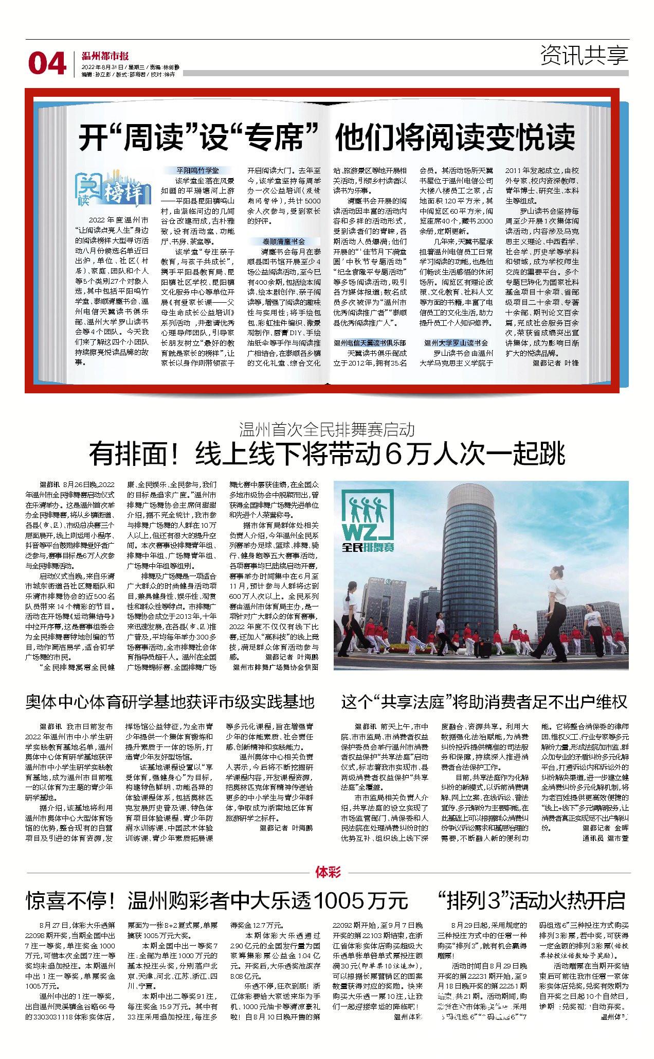 温州都市报:开“周读”设“专席”他们将阅读变悦读