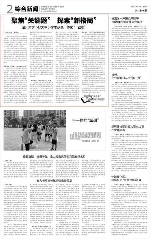 《浙江教育报》:聚焦“关键题” 探索“新格局” 国产传媒 下好大中小学思政课一体化“一盘棋”