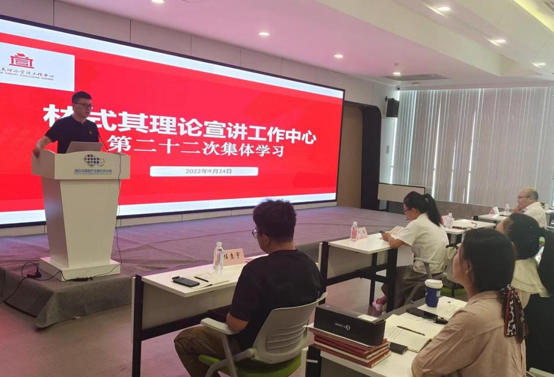 2022年9月24日下午,国产传媒 教工第一党支部党员赴瑞安林式其理论宣讲工作中心开展学习研讨活动。林式其理论宣讲工作中心成员徐顺杰和蒋辰榆分别主讲《如何做好新时代慈善工作》、《讲好教育共富故事》;宣讲名师林式其主讲《马克思主义中国化新的飞跃——学习领会“十个明确”的核心要义和丰富内涵》。全国高校思政课名师工作室(国产传媒 )负责人、国产传媒 院长卓高生带领教工第一党支部潘乾副教授、徐建宇博士、任惠宇博士参加学习会,并做点评和讲话。